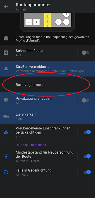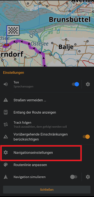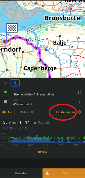 Neben der hier gezeigten Tracknavigation bietet OsmAnd auch eine wirklich ausgezeichnete Option sich einfach wie mit einem herkömmlichen Navi / App eine Route von A nach B erstellen zulassen.